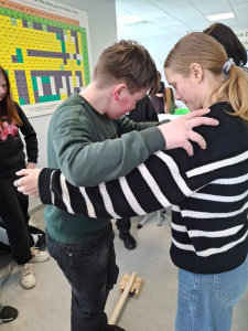 Sadarbojoties grupās, skolēni noskaidroja, pētīja un testēja kompozītmateriālu īpašības, veidoja kompozītu paraugus.