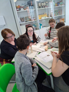 6.klašu skolēni un skolotāja I.Kociņa piedalījās Saldus pamatskolas dabaszinātņu centra organizētajā dabaszinību nodarbībā “Pētām īpašības”.